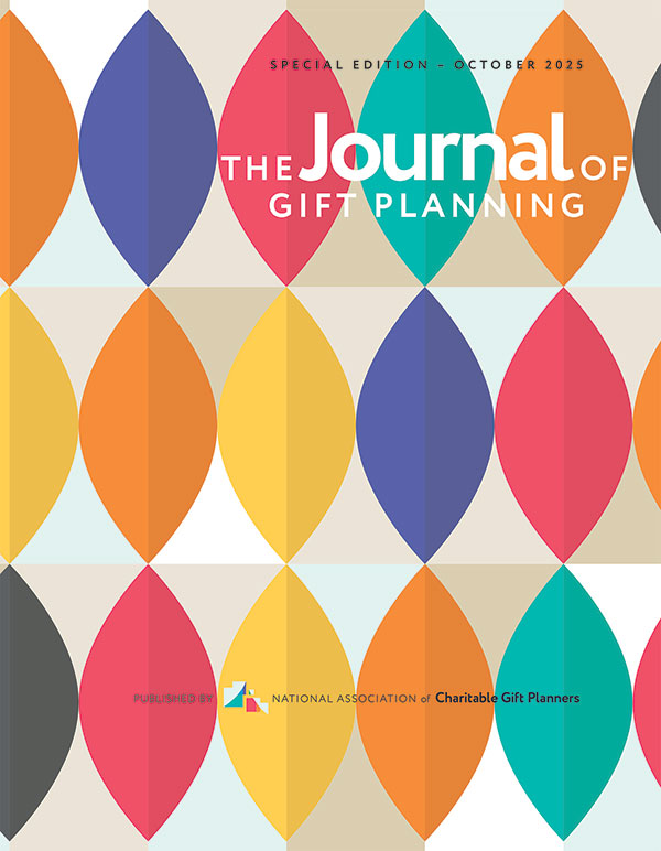 CONTENTS – SPECIAL EDITION 2025 26 You’re in the Will; Now What? Strategies for Maximizing Legacy and Lifetime Gifts Russell James, J.D., Ph.D., CFP® Legacy Giving 18 Overcoming Obstacles When Charities Collect Deceased Donors’ IRAs Johni Hays Estate Planning PRODUCTION TEAM Names of production team